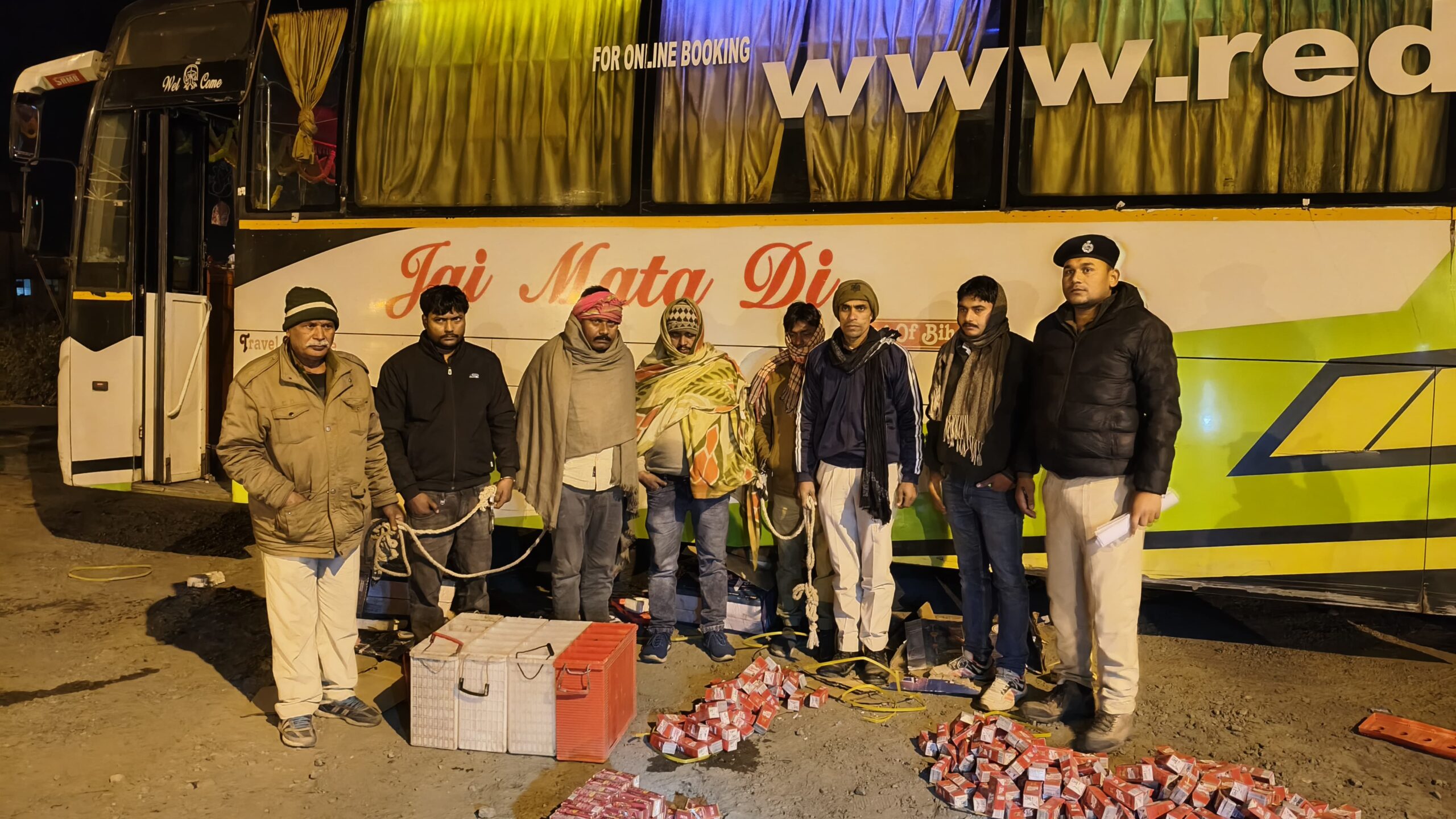 रजौली थाना क्षेत्र के समेकित जांच चौकी पर उत्पाद बलों ने कलकत्ता से मुजफ्फरपुर जा रही एक बस में रखे चार बड़े बैटरी के कभर में छुपाकर ले जा रहे 431 टेट्रा पैक शराब को जब्त किया गया.इस दौरान बस को जब्त किया गया एवं बस के एक ड्राइवर,दो खलासी एवं एक कंडक्टर को गिरफ्तार किया गया.शराब के धंधे में जुटे लोग शराब परिवहन के लिए चारपहिया वाहनों में तहखाने,बाइकों के टंकी में तहखाना,दूध व कंटेनर के अलावे ट्रक आदि में शराब का परिवहन करने में जुटे हुए हैं.किंतु उत्पाद बल भी धंधेबाजों के मंसूबों पर पानी फेरते हुए लगातार कार्रवाई में जुटे हुए हैं.उत्पाद अधीक्षक अरुण कुमार मिश्र ने बताया कि जांच चौकी पर उत्पाद बलों के सहयोग से झारखण्ड की ओर से आनेवाली प्रत्येक वाहनों की सघन जांच किया जा रहा है,जिसका नेतृत्व उत्पाद एसआई बब्लू कुमार कर रहे हैं.शनिवार के अहले सुबह में कलकत्ता से आ रही एक बस संख्या डब्लूबी41जे8709 की जांच के क्रम में केबिन से चार इन्वर्टर वाले बैटरी के अंदर छुपाकर रखे कुल 431 टेट्रा पैक शराब बरामद किया गया.जब्त शराब में मैकडवेल नम्बर वन के ट्रिपल एक्स रम के 180 एमएल वाले 96 टेट्रा पैक एवं ऑफिसर चॉइस व्हस्की के 180 एमएल वाले 335 टेट्रा पैक बरामद किया गया.उत्पाद बलों ने जब बस के कर्मियों से पूछताछ की,तो उन्होंने बताया कि रानीगंज में एक व्यक्ति द्वारा शराब दिया गया था,जिसे बिहार के मुजफ्फरपुर लेकर जाना था,इसके लिये कुल 8000 रुपये भाड़ा दिया गया था.उत्पाद अधीक्षक ने बताया कि बरामद शराब को लेकर बस को जब्त किया गया.साथ ही बस के ड्राइवर रजौली थाना क्षेत्र के बलिया गांव निवासी ईश्वरी साव के पुत्र सुरेंद्र कुमार,खलासी पश्चिमी चम्पारण के चनपटिया थाना क्षेत्र के चौबे टोला गांव निवासी स्व मुंशी महतो के पुत्र संतोष कुमार महतो व मुजफ्फरपुर के अहियारपुर थाना क्षेत्र के शेखपुर गांव निवासी नन्द किशोर राय के पुत्र संतोष राय एवं कंडक्टर दरभंगा जिले के मनीगाछी थाना क्षेत्र के फतहपुर गांव निवासी मो. फारुख के पुत्र मो. कैफ के रूप में हुई है.उत्पाद अधीक्षक ने बताया कि जब्त शराब एवं बस के अलावे गिरफ्तार लोगों के विरुद्ध बिहार उत्पाद अधिनियम के सुसंगत धाराओं के तहत प्राथमिकी दर्ज कर ली गई है.वहीं शनिवार को सभी गिरफ्तार लोगों को स्वास्थ्य जांच के बाद न्यायिक हिरासत में जेल भेज दिया गया है.इस मौके पर उत्पाद एएसआई बिशु हेम्ब्रम के अलावे उत्पाद सिपाही व गृहरक्षक के जवान मौजूद रहे.