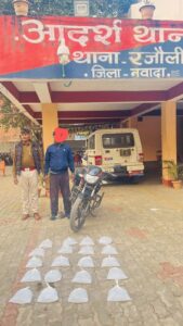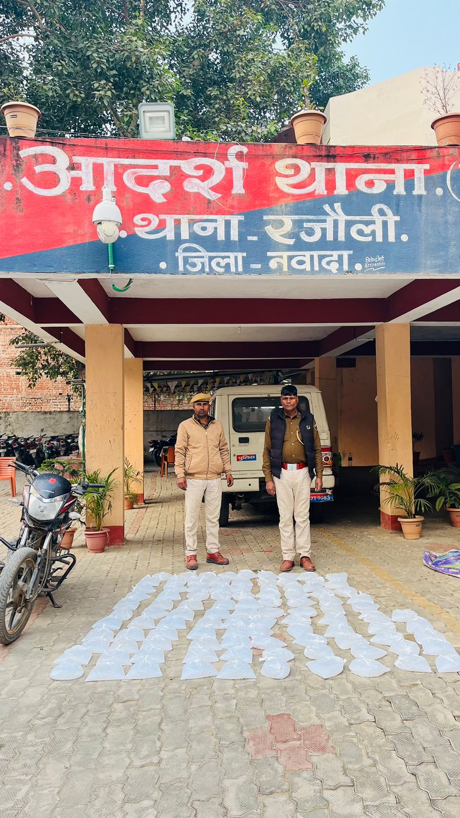 गिरफ्तार शराब धंधेबाज की पहचान नवादा जिले के नेमदारगंज थाना क्षेत्र के हसनपुर गांव निवासी कारू राम के पुत्र महेंद्र राम को गिरफ्तार किया गया है.थानाध्यक्ष ने बताया कि जब्त शराब एवं दोनों बाइकों के अलावे गिरफ्तार शराब धंधेबाज के विरुद्ध बिहार उत्पाद अधिनियम के सुसंगत धाराओं के तहत प्राथमिकी दर्ज कर ली गई है.वहीं मंगलवार को गिरफ्तार शराब धंधेबाज को अस्पताल में स्वास्थ्य जांच के बाद न्यायिक हिरासत में जेल भेज दिया गया है.