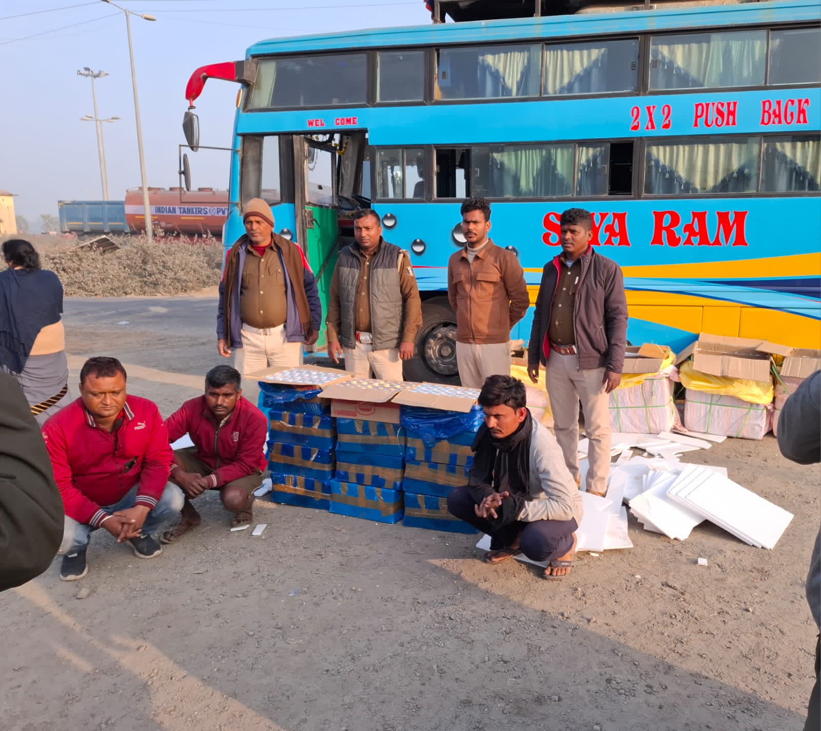 रजौली थाना क्षेत्र के बिहार-झारखण्ड सीमावर्ती चितरकोली गांव स्थित समेकित जांच चौकी से उत्पाद बलों ने कलकत्ता से वजीरगंज जा रही एक बस से 288 केन बियर बरामद किया.साथ ही बस के चालक,कंडक्टर एवं खलासी तीन लोगों को गिरफ्तार किया एवं बस को जब्त किया गया.उत्पाद अधीक्षक अरुण कुमार मिश्र ने बताया कि बिहार मद्दनिषेध को लेकर उत्पाद एसआई बब्लू कुमार के नेतृत्व में झारखण्ड की ओर से आनेवाली प्रत्येक वाहनों की सघन जांच की जाती है.शनिवार की अहले सुबह उत्पाद एसआई संगम कुमार विद्यार्थी द्वारा कलकत्ता से वजीरगंज जानेवाली सियाराम बस संख्या बीआर02पीए7400 की जांच की गई.जांच के दौरान बस में सीटों के बीच में रखे हायवर्डस प्रीमियम स्ट्रांग बियर के 500 एमएल वाले 288 केन बियर को बरामद किया गया,जिसकी कुल मात्रा 144 लीटर है.साथ ही जब्त बियर को लेकर बस के चालक गया जिले के आमस थाना क्षेत्र के सिहुली गांव निवासी मो. नबी खान के पुत्र आसिफ खान,कंडक्टर औरंगाबाद जिले के कथरुआ गांव निवासी जय कुमार सिंह के पुत्र रंधीर कुमार सिंह एवं खलासी सलैया थाना क्षेत्र के पिरवां गांव निवासी स्व राम लगन चौधरी के पुत्र सुनील चौधरी को गिरफ्तार किया गया है.वहीं बस एवं तीन मोबाइल को जब्त किया गया है.उत्पाद अधीक्षक ने बताया कि जब्त बियर व बस के अलावे गिरफ्तार लोगों एवं वाहन स्वामी के विरुद्ध बिहार उत्पाद अधिनियम के सुंसगत धाराओं के तहत प्राथमिकी दर्ज कर ली गई है.वहीं उत्पाद बल संगठित अपराध में शामिल लोगों की छानबीन कर रही है.साथ ही कहा कि शनिवार को गिरफ्तार लोगों का स्वास्थ्य जांच अनुमंडलीय अस्पताल में करवाकर न्यायिक हिरासत में जेल भेज दिया गया है.इस मौके पर उत्पाद एएसआई बिशु हेम्ब्रम के अलावे उत्पाद सिपाही,सैप बल एवं गृहरक्षक के जवान मौजूद रहे.
