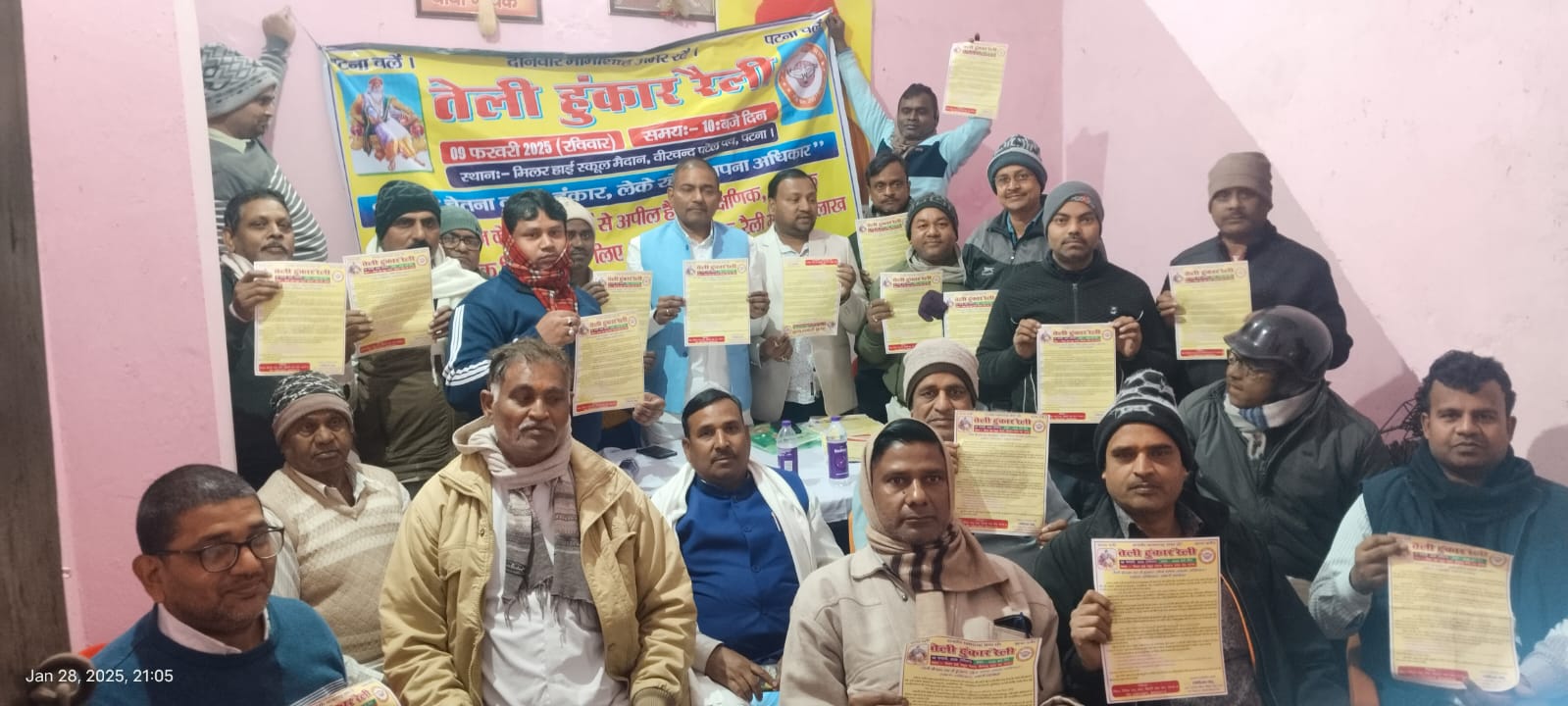 पटना में होने वाले 9 फरवरी को तेली हुंकार रैली में रजौली से तेली समाज के लोग शामिल होने को लेकर बुधवार को रजौली संगत स्थित तेली समाज कार्यालय में एक बैठक की.आयोजित इस बैठक में दर्जनों तेली समाज के लोगों ने गहन विचार-विमर्श किया.आगामी 9 फरवरी रविवार को मिलर हाई स्कूल के मैदान में तेली हुंकार रैली में रजौली के सैकड़ो तेली समाज के लोग पहुंचेंगे.तेली साहू समाज के प्रदेश उपाध्यक्ष संजय साहू ने कहा कि बिहार तैलिक साहू सभा के प्रदेश अध्यक्ष रणविजय साहू के नेतृत्व में पटना में तेली हुंकार रैली 9 फरवरी को होना है.हम लोग तेली समाज पूरे बिहार में चट्टानी एकता का परिचय देंगे.आने वाले विधानसभा चुनाव 2025 में अधिक से अधिक टिकट की मांग कर रहे हैं.विधान परिषद में भी तेली समाज का सदस्य होना चाहिए एवं सरकार का जो भी आयोग है,उसमें भी हमारी भागीदारी होनी चाहिए.तेली साहू समाज के जिला अध्यक्ष जितेंद्र कुमार ने कहा कि हमारी तेली जाति की आबादी बिहार में लगभग 3% लगभग 37 लाख है.इसके बावजूद भी हमें हमारे अधिकारों से वंचित रखा गया है.हमारा संगठन बिहार तेली साहू सभा हमारे शैक्षणिक, सामाजिक और राजनीतिक उत्थान के लिए सतत संघर्षरत है.तेली समाज राजनीतिक भागीदारी,हिस्सेदारी और हक की लड़ाई के लिए रख रहे हैं.हमारी मांगे है कि छत्तीसगढ़ और मध्य प्रदेश की तरह बिहार में भी तेलघानी आयोग का गठन शीघ्र किया जाए, व्यावसायिक आयोग का गठन किया जाए.साथ ही लोकसभा व राज्यसभा के अलावे बिहार विधानसभा व विधान परिषद में तेली समाज को उचित भागीदारी दी जाए.मंत्रिमंडल में तेली समाज का भागीदारी सुनिश्चित किया जाए आदि मांगे शामिल है.तेली समाज की बैठक में साहू समाज के प्रखंड अध्यक्ष नवशीष कुमार, साहू समाज के कोषाध्यक्ष विजय आर्या, व्यावसायिक संघ के अध्यक्ष संदीप कुमार, पूर्व मुखिया सुरेश साव, महामंत्री अरुण साव, वार्ड पार्षद प्रतिनिधि सतीश कुमार, दीपांकर कुमार, दिवाकर प्रसाद, शंकर प्रसाद, सुरेश साव, कारू साव, परिमल कुमार, विक्रम कुमार, राजीव कुमार, सतेंद्र साव, सत्य प्रकाश साव समेत दर्जनों लोग उपस्थित थे.
