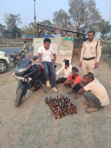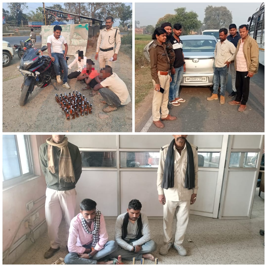 वहीं उत्पाद एसआई संगम कुमार विद्यार्थी ने छपरा स्कूल के समीप एनएच-20 पर पीछा करके पल्सर 220 बाइक संख्या बीआर52ई3397 पर लदे 180 एमएल वाले 8पीएम नामक शराब के 43 बोतल शराब के साथ तीन लोगों को गिरफ्तार किया,जिनमें एक नाबालिग है.वहीं गिरफ्तार अन्य दो लोगों की पहचान नवादा जिले के शाहपुर थाना क्षेत्र के पार्वती गांव निवासी शंभू सिंह के पुत्र गोलू कुमार एवं चूलीहारी गांव निवासी सूर्यकांत रजक के पुत्र अविनाश कुमार को गिरफ्तार किया.उत्पाद एएसआई अंकित कुमार ने जीवन ज्योति बस संख्या बीआर27पी3192 पर 375 एमएल विदेशी शराब के साथ सफर कर रहे नालंदा जिले के रहुई गांव निवासी बब्लू कुमार के पुत्र गौतम कृष्णा को गिरफ्तार किया.उत्पाद अधीक्षक ने बताया कि जब्त कार,शराब एवं गिरफ्तार लोगों के विरुद्ध प्राथमिकी दर्ज करने के बाद न्यायिक हिरासत में जेल भेज दिया गया है.इस दौरान उत्पाद एएसआई बिशु हेंब्रम,सिपाही एवं गृहरक्षक के जवान मौजूद रहे.