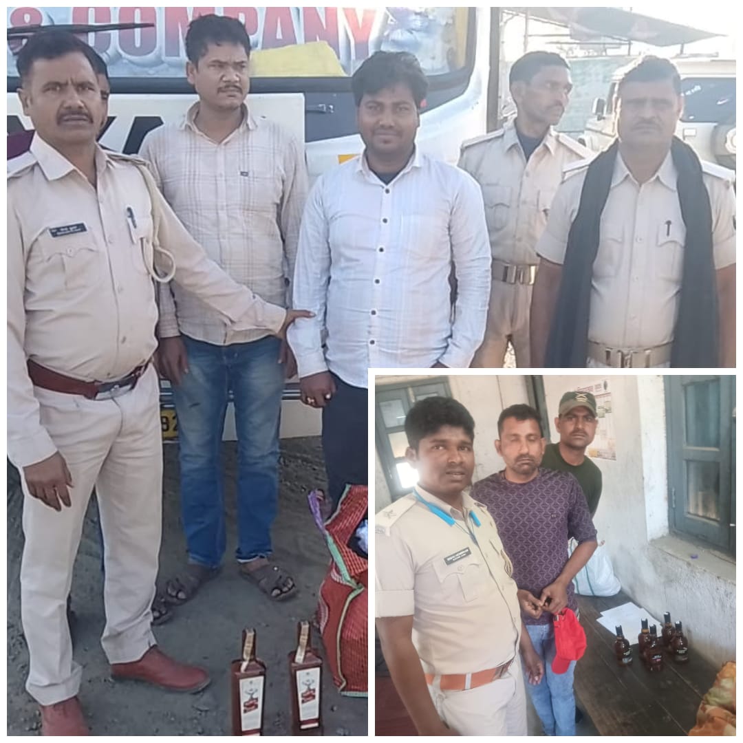 बुधवार की सुबह उत्पाद एएसआई सौरभ कुमार एवं बिशु हेंब्रम ने दयान बस संख्या डब्लूबी53बी7392 पर सवार नालंदा जिले के तेल्हड़ा थाना क्षेत्र निवासी स्व कृष्ण साव के पुत्र अजीत कुमार साव के पास से रॉयल स्टेज के 750 एमएल वाले दो बोतल शराब बरामद किया गया.गिरफ्तार युवक ने बताया कि उसके यहां छठियारी था,जिसमें उपयोग करने के लिए वो कलकत्ता से खरीदकर शराब ले जा रहा था.वहीं भवानी बस संख्या बीआर01पीक्यु8322 पर सवार कोडरमा जिले के मरकच्चो थाना क्षेत्र निवासी उदेश्वर शर्मा के पुत्र पप्पू शर्मा के पास से ब्लेंडर्स प्राइड के 375 एमएल वाले चार बोतल एवं रॉयल चैलेंज के 375 एमएल वाले एक बोतल शराब बरामद किया गया.गिरफ्तार युवक द्वारा बताया गया कि वह शराब को कोडरमा से खरीदकर अपने उपयोग के लिए ले जा रहा था.