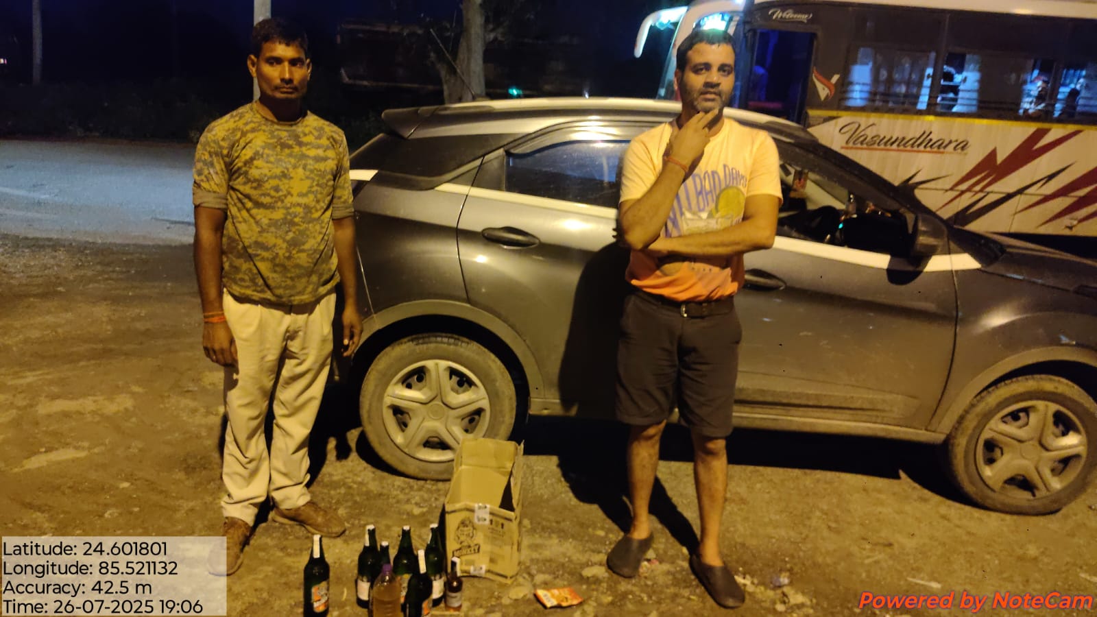 रजौली थाना क्षेत्र के चितरकोली स्थित समेकित जांच चौकी पर तैनात उत्पाद बलों ने यात्री बस,कार एवं बाइक पर लदे देशी विदेशी शराब के साथ दो लोगों को गिरफ्तार किया।वहीं कार एवं बाइक को जब्त किया गया।उत्पाद अधीक्षक अरुण कुमार मिश्र ने बताया कि बिहार मद्दनिषेध को लेकर जांच चौकी पर उत्पाद बलों के सहयोग से झारखंड की ओर से आनेवाली प्रत्येक वाहनों की सघन जांच की जाती है एवं आसपास के क्षेत्रों में गश्त कर भी शराब सम्बन्धी गतिविधियों पर अंकुश लगाने का काम किया जा रहा है,जिसका नेतृत्व उत्पाद एसआई न्यूटन कर रहे हैं।उत्पाद अधीक्षक ने बताया कि जांच चौकी पर जीवन ज्योति बस संख्या बीआर27पी3191 को जांच किया गया।बस में सफर कर रहे नालन्दा जिले के बिंद थाना क्षेत्र के राजोपुर गांव निवासी उपेंद्र पासवान के पुत्र नीतीश कुमार के पास से रॉयल चैलेंज के 750 एमएल वाले दो बोतल बरामद किया गया,जिसमें एक बोतल में 650 एमएल शराब था।वहीं बोकारो से पटना जा रहे लग्जरी कार टाटा नेक्सन संख्या बीआर01एफई4959 के जांच के दौरान 6 बोतल बियर और दो बोतल शराब बरामद किया गया।साथ ही कार चालक पटना जिले के कंकड़बाग निवासी याशो वर्धन ओझा के पुत्र अक्षर ओझा को गिरफ्तार किया गया है एवं कार को जब्त किया गया है।गिरफ्तार युवक द्वारा बताया गया कि कार से बरामद शराब व बियर खुद के सेवन के लिए पटना लेकर जा रहा था।वहीं दूसरी ओर धर्मपुर मोड़ के समीप एक होंडा शाइन बाइक पर लदे 120 लीटर चुलाई शराब को जब्त किया गया है,जबकि शराब तस्कर भागने में सफल रहा।उत्पाद अधीक्षक ने बताया कि जब्त शराब,बियर,बाइक एवं कार के अलावे गिरफ्तार दोनों लोगों के विरुद्ध बिहार उत्पाद अधिनियम के तहत प्राथमिकी दर्ज कर ली गई है।गिरफ्तार दोनों लोगों को रविवार को स्वास्थ्य जांच के बाद न्यायिक हिरासत में जेल भेज दिया गया है।इस मौके पर उत्पाद एसआई न्यूटन के अलावे उत्पाद एएसआई पंकज कुमार साव व मो. साबिर एवं गृहरक्षक के जवान मौजूद रहे।