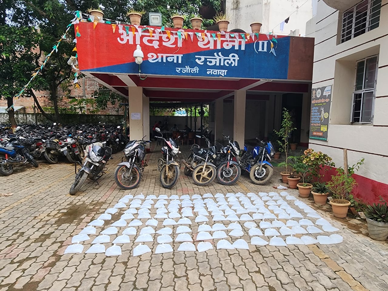 मोहकामा के जंगली क्षेत्र से एक बाइक पर लदे 135 लीटर शराब बरामद,प्राथमिकी दर्ज,झाड़ियों से भी पांच बाइक जब्त,पुलिस कर रही जांच