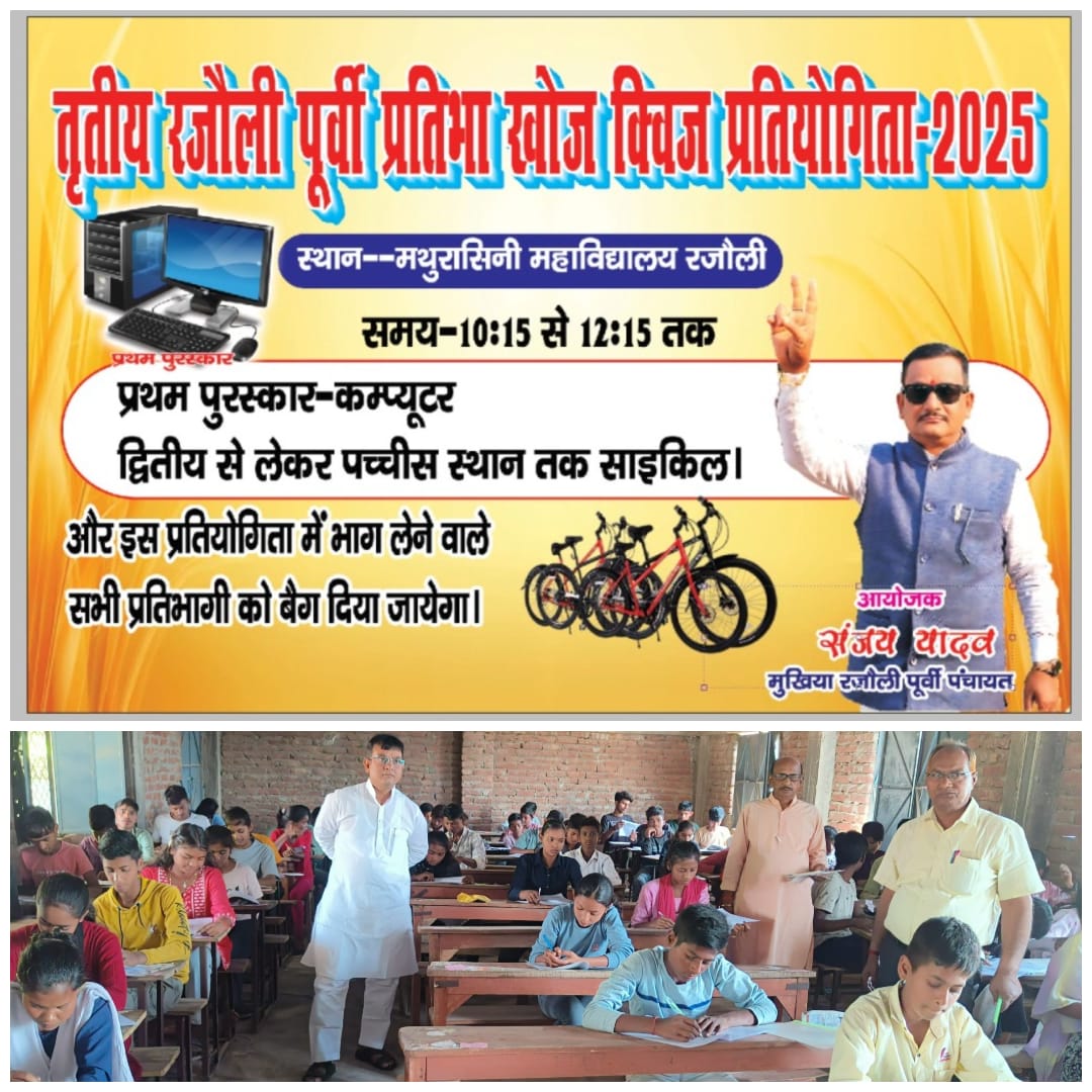 रजौली पूर्वी प्रतिभा खोज क्विज प्रतियोगिता संपन्न,217 छात्र-छात्राएं हुए शामिल,अन्य ग्राम पंचायतों के मुखिया द्वारा करवाना चाहिए इस प्रकार के आयोजन