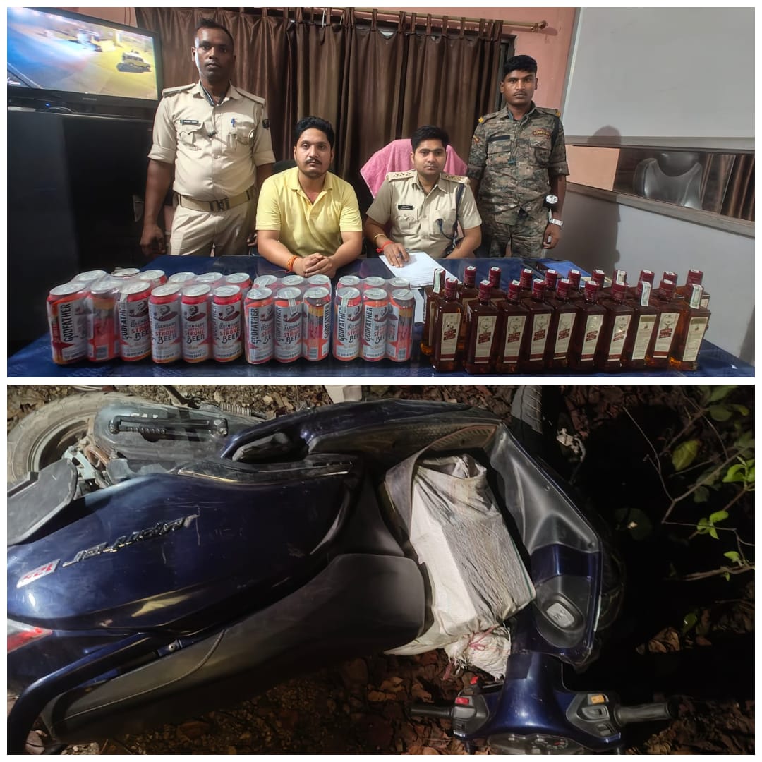 स्कूटी पर लदे 48 बोतल शराब और बियर को उत्पाद बलों ने किया बरामद,धंधेबाज फरार