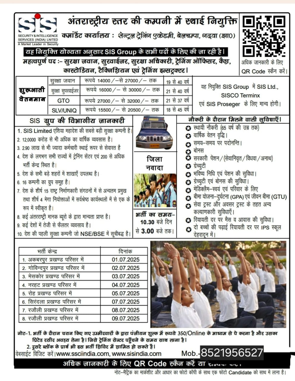भारत सरकार की ELI योजना के तहत SIS में सुरक्षा जवान,सुपरवाइजरों एवं सुरक्षा अधिकारियों की बहाली शुरू,जानें पूरी जानकारी
